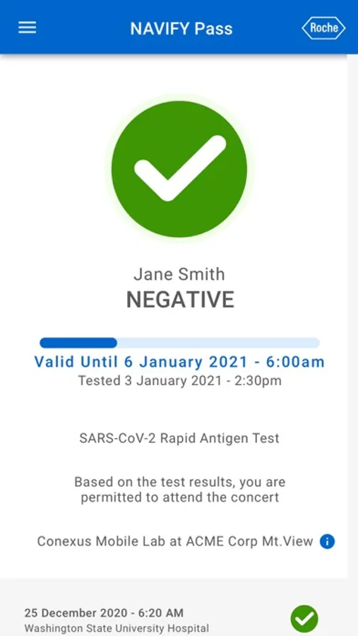 Receive, view, and display to others your test results that have been entered in the NAVIFY Pass system.