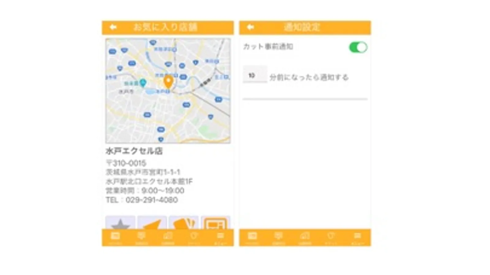 カットのご案内予定時刻が近くなった時のお知らせ通知を設定することができます。