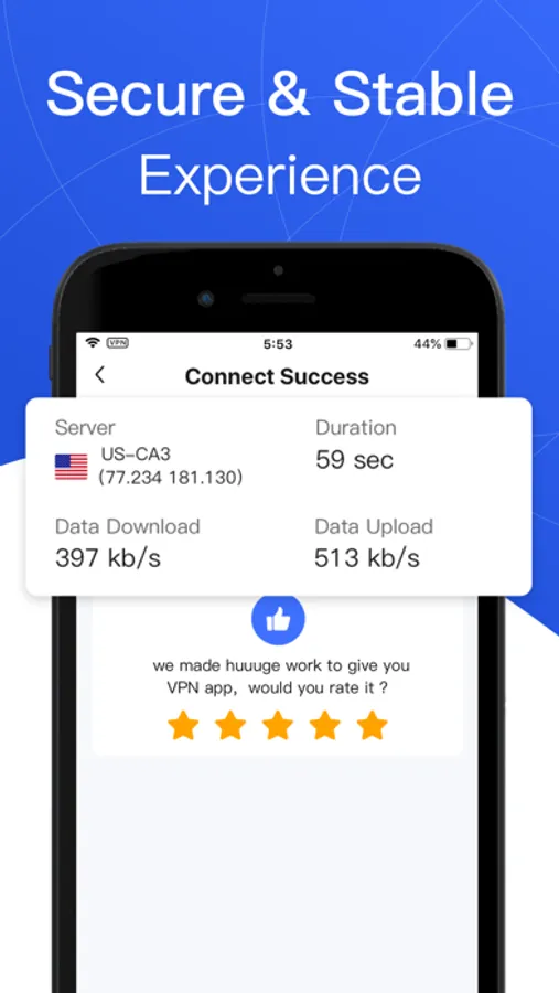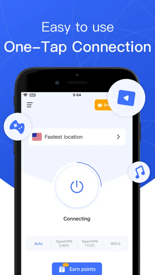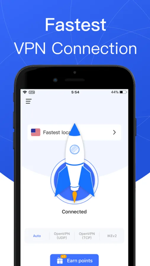 Fast VPN uses an encrypted VPN connection. No matter you are connected to any WiFi hotspot, Fast VPN will protect your privacy and network traffic.