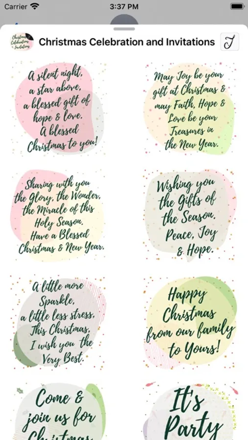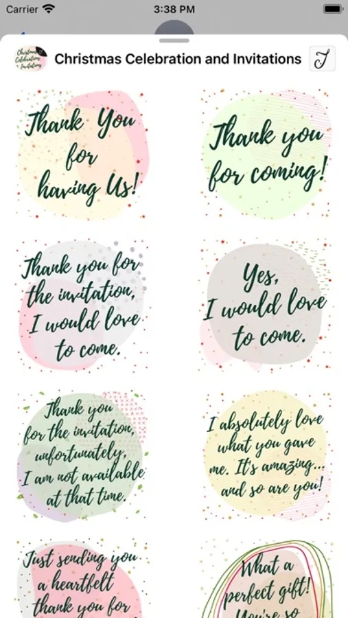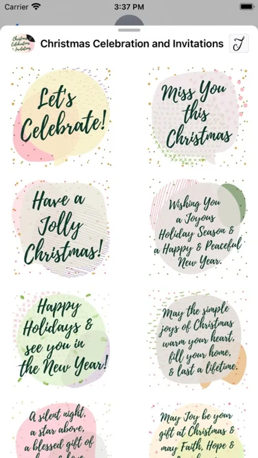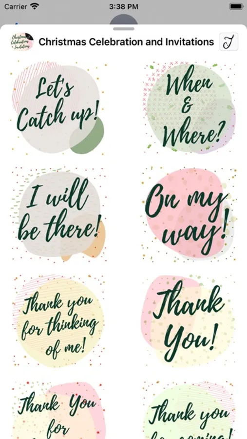 This iMessage Stickers pack comes with beautifully designed Christmas invitations and greetings for your friends and family. This pack also cover stickers to accept or decline invitations, commonly used greetings and thank you notes for presents received.
