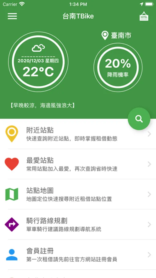支援台南地區YouBike2.0(UBike)站場資訊