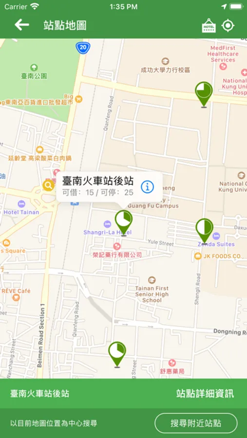 站點搜尋 - 地圖定位搜尋最近租借站與導航服務!