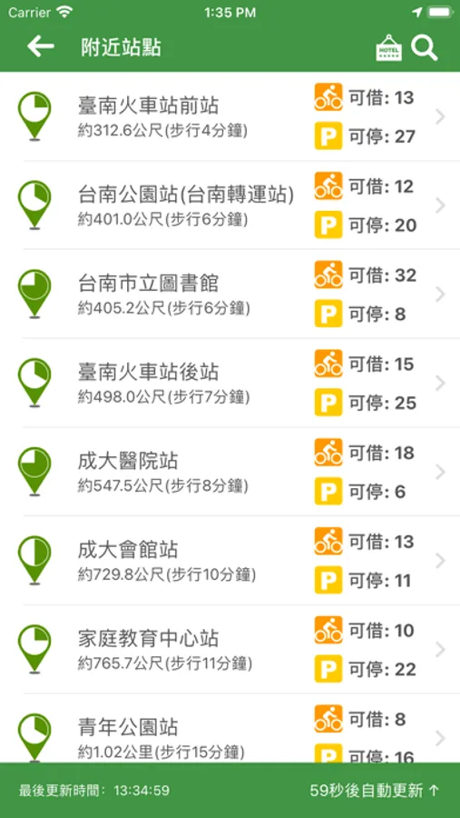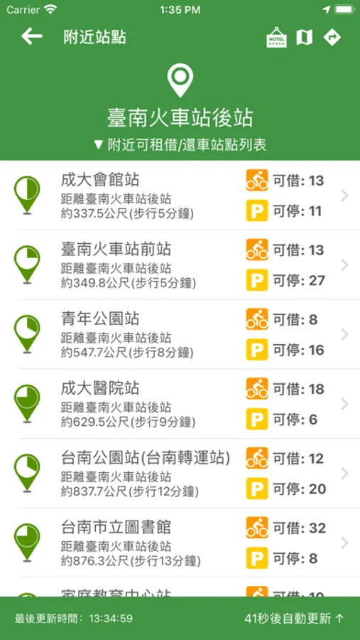 租借動態 - 全自動更新可借車輛與可停位置資訊!