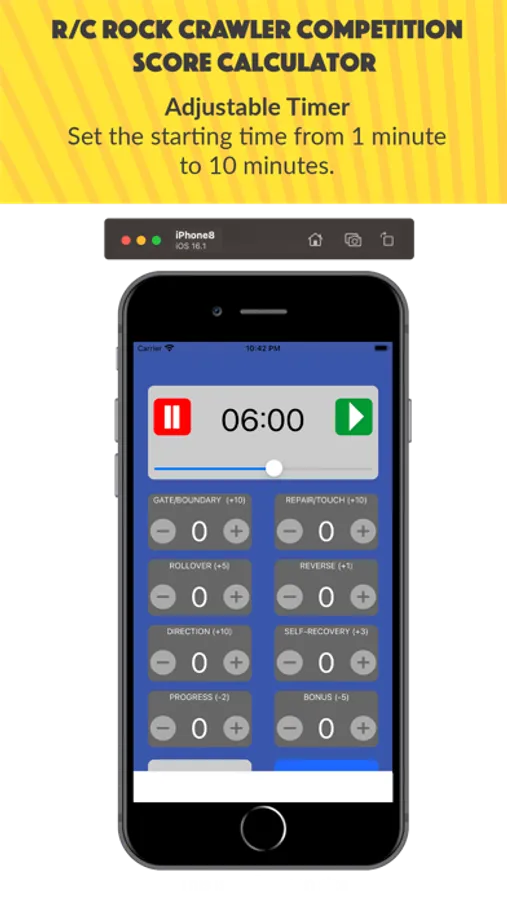 Track and calculate your Northern Arizona (and other) RC Rock Crawler Competition scores easily with this score point calculator. All of the basic features are included in this app.