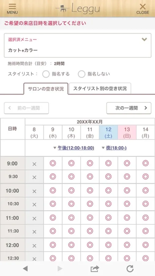 希望のメニュー・日時を指定して送信するだけで予約を依頼できます。