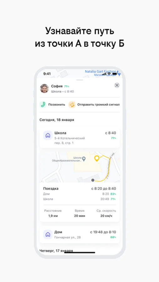 — Уведомления о посещении нескольких мест. Добавьте школу, садик и другие важные места, чтобы знать, когда ваши близкие приходят туда и уходят