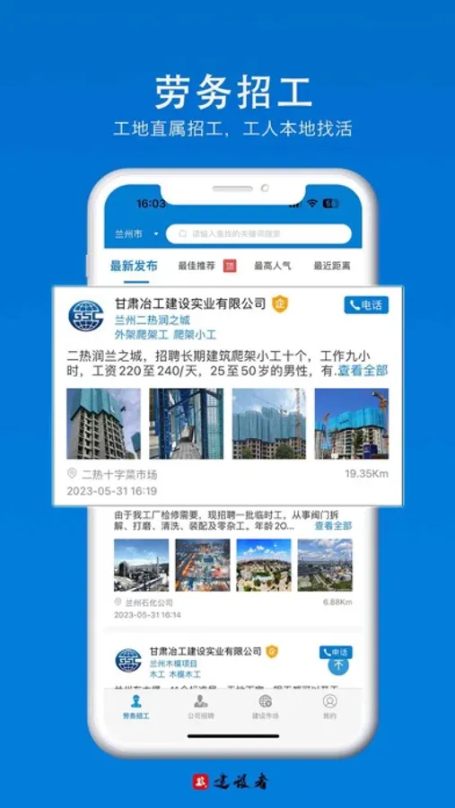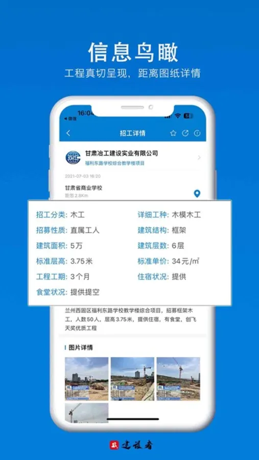 【劳务招工】实现建筑企业本地直属招募工人,突破企业跨区招聘难、招聘信息发布瓶颈的局限。应用工程项目按附近距离呈现,凸显招工详情、工程位置、联系方式、施工图纸、薪资待遇等,实现与本地建筑工人零障碍沟通,工人找活更为便捷。