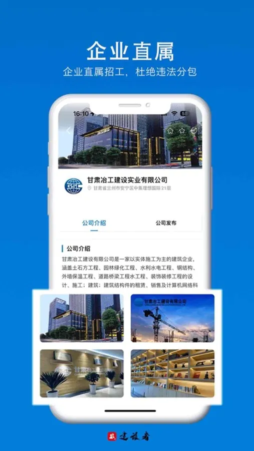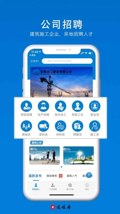 【公司招聘】实现建筑企业跨区经营招募当地建筑管理人才,应用提供详细的薪资待遇、工作环境、工程位置、等多岗位可供选择,为建筑人才提供本地详细有效的招聘信息,为建筑施工企业提供快捷可靠的招聘环境;