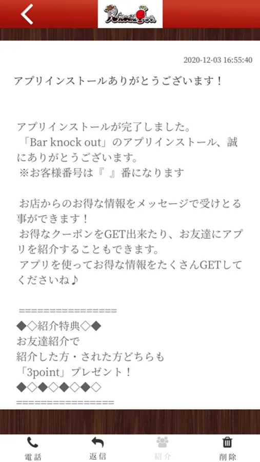 BAR.KOのアプリをSNSを通じてお友達に紹介する事ができます。