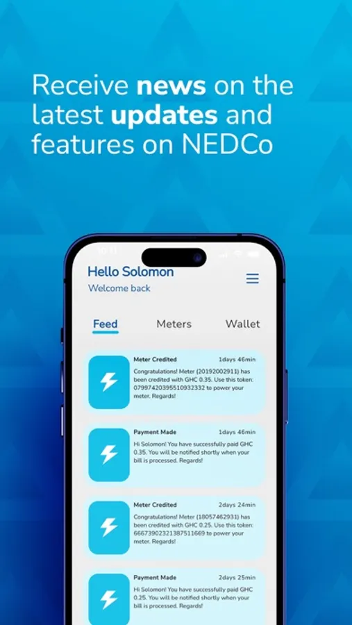 NEDCo Power App allows users to Manage Prepaid and Postpaid meters. Payment can be made to pay bill for Postpaid meters or to top up Prepaid meters. User can view past transactions and its status in History. Complaints can be logged about faults and billing.