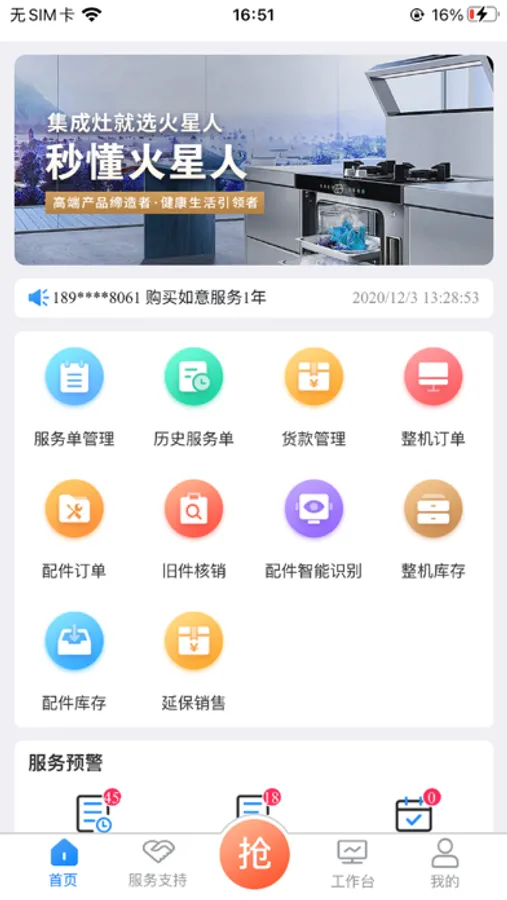 服务接单,服务现场管理,申请配件,销售延保服务,申请结算费用,服务技术支持等。