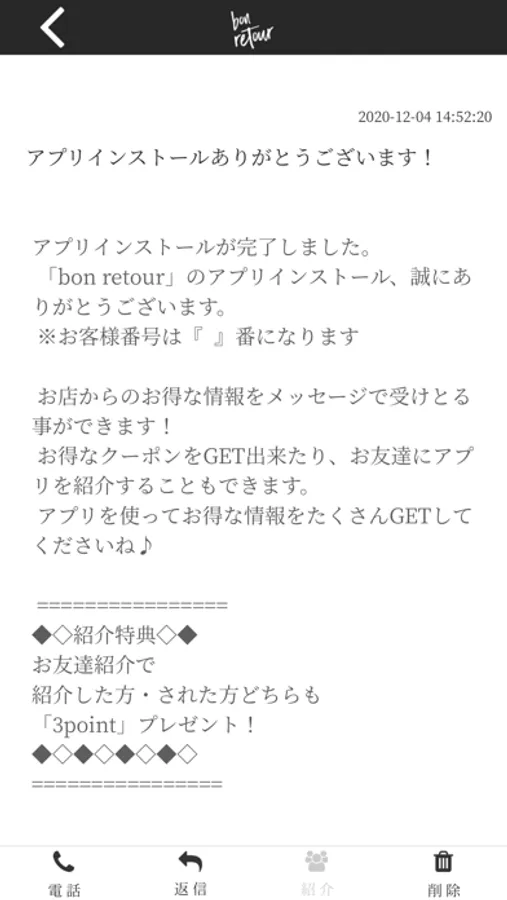 このアプリでは、bon retourの最新情報の受け取りや便利な機能を使う事ができます。