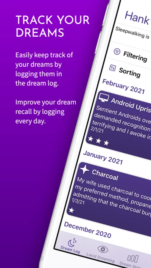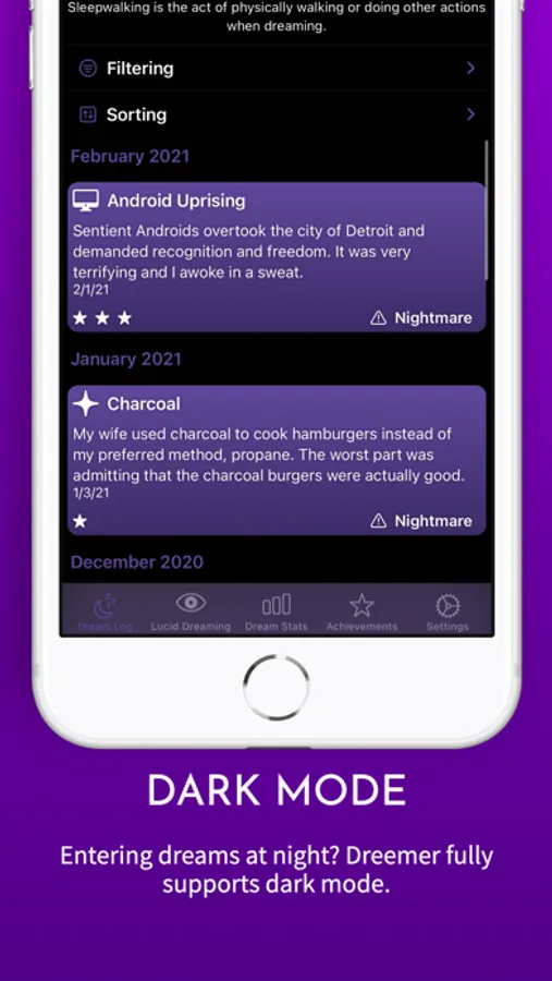 • The ability to mark that a dream was a nightmare or a lucid dream
