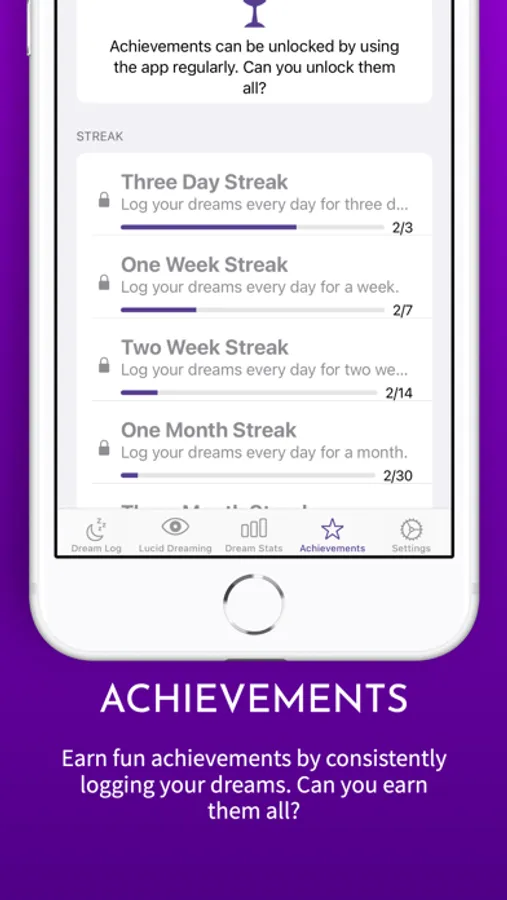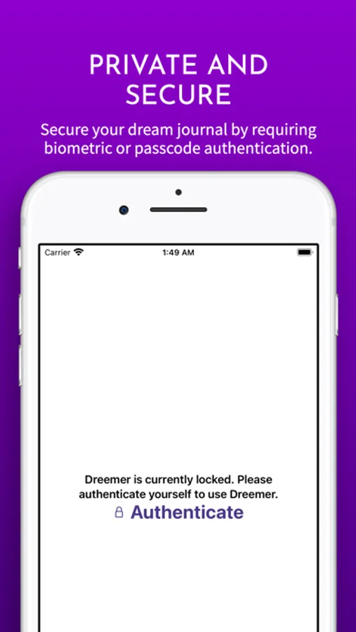 • Passcode or biometric authentication to prevent prying eyes from reading your dream journal without permission