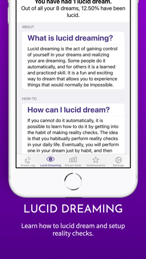 • Information on lucid dreaming, and full support for tracking which dreams are lucid
