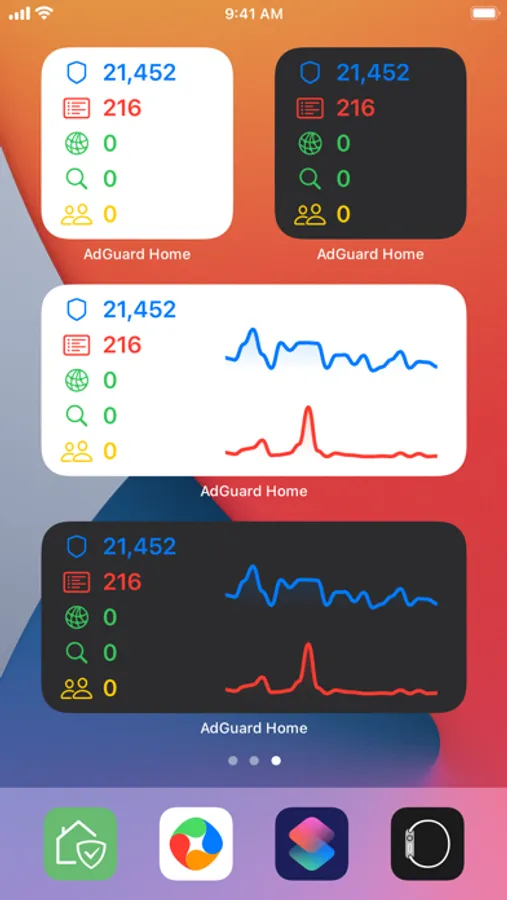 The Live Activity as well as extensive support for Home Screen & Lock Screen widgets make controlling your AdGuard Home nice and easy!