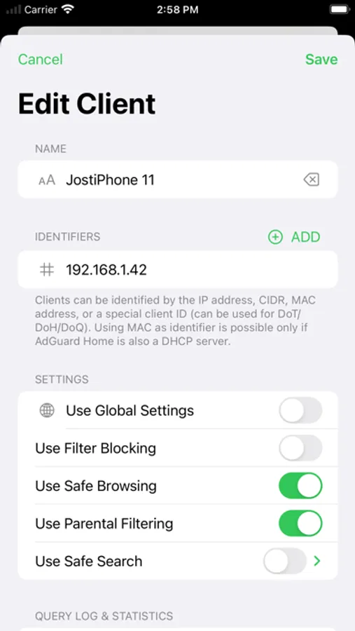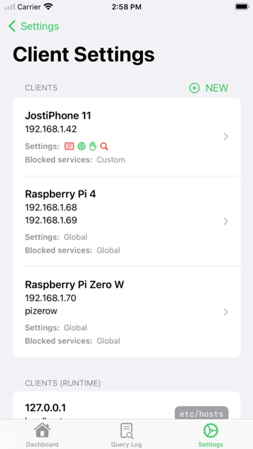 - Manage Clients, including filtering settings, blocked services, and tags (requires Pro)