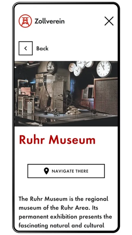 The UNESCO World Heritage Zollverein covers an area of 100 hectares. With the help of this app, visitors can discover the wide range of services and activities at the World Heritage site. The app shows the way to museums, exhibition and event halls, places of interest, catering, businesses and the most important sites on the premises. It provides information about both the current and the historical usage of the buildings and facilities. Entertaining tours lead to exciting places at Zollverein.