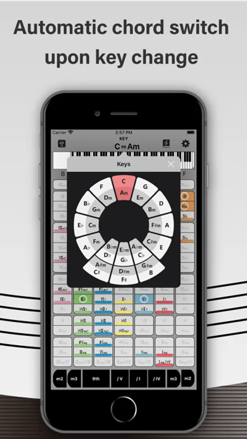 Users will be able to recall the sounds such as Maj7, m7, 7th, sus4, dim, aug etc. just by looking at each chord name.