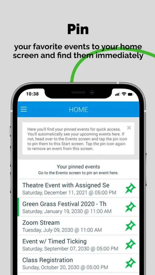 - View a list of all your events, pin events to the home screen for quick access, and select your active event to begin selling.