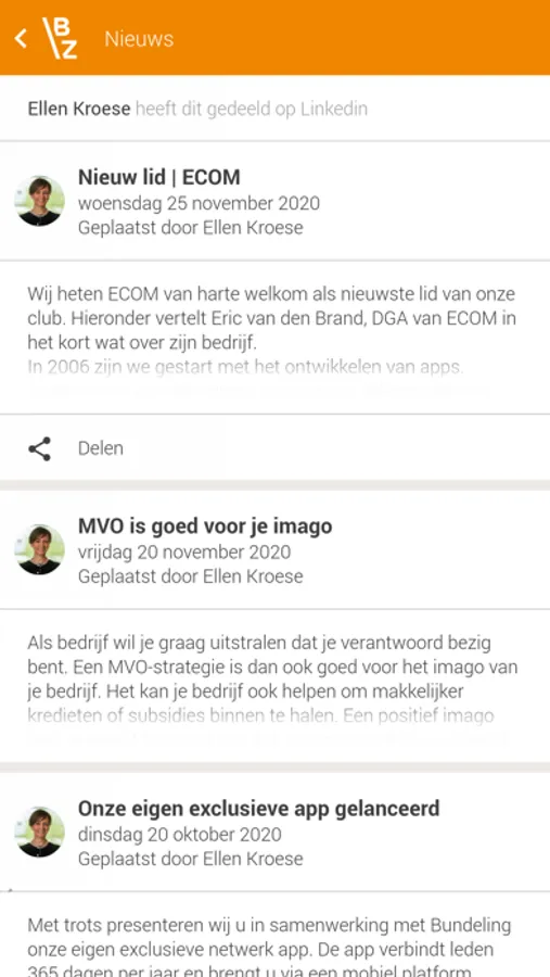 Met onze app kom je eenvoudig in contact met andere leden. Je kunt direct contact leggen via de chat waardoor je makkelijk je netwerk uitbreidt. Daarnaast blijf je met de app op de hoogte van het laatste nieuws en kun je je direct aanmelden voor evenementen en activiteiten. Wil je contact met je regiomanager of heb je een vraag aan één van onze belangenbehartigers op het gebied van arbeidsmarkt en onderwijs, milieu en duurzaamheid of infrastructuur en ruimte? Via de app leg je direct contact. Gebruik de app om alles uit je lidmaatschap te halen.
