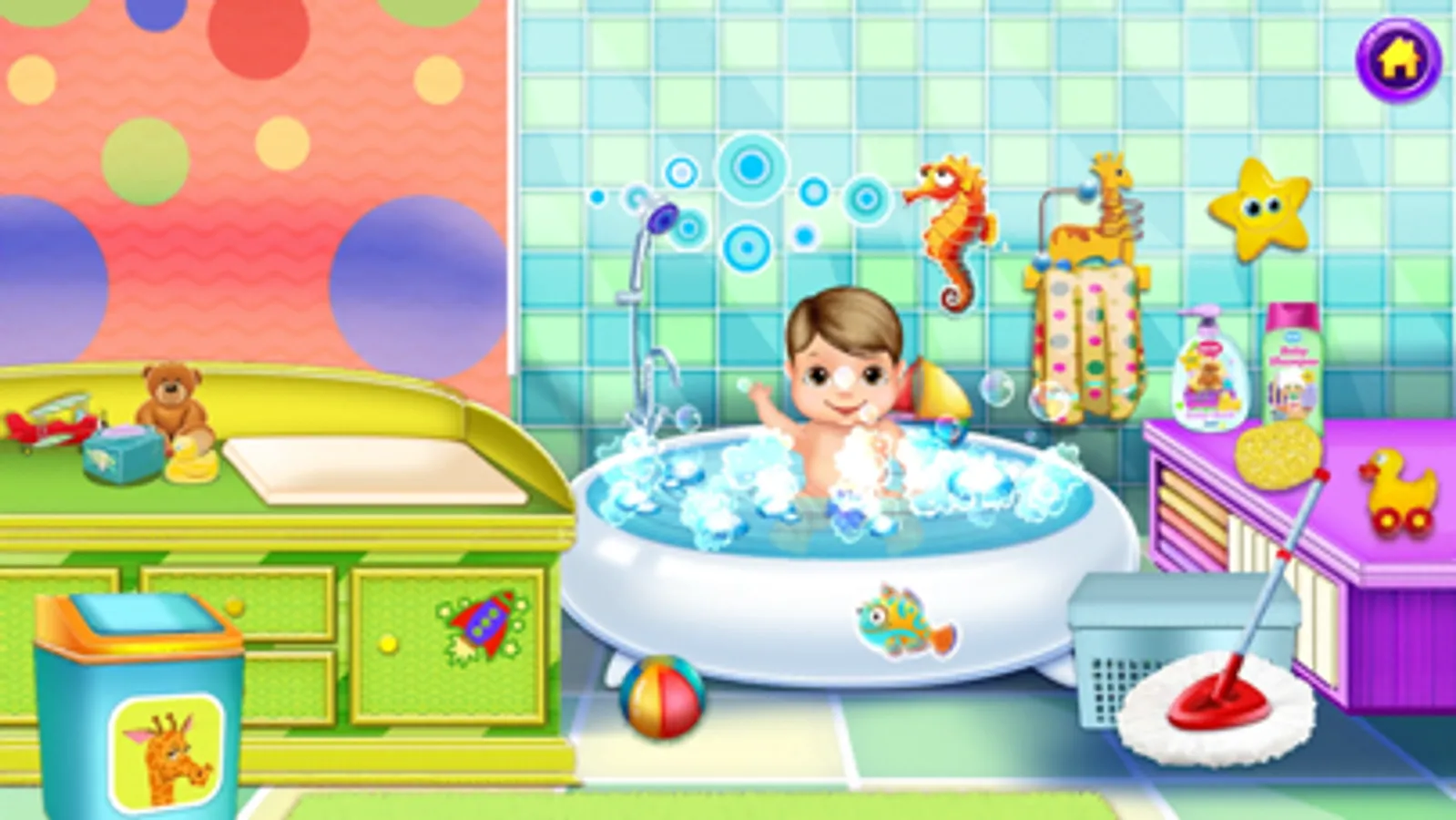 Oh, look! Your messy baby is all dirty again! Your task is to prepare a bath for this little fellow. Come, super nanny, and see what the baby care games are all about! Throw away dirty nappy, put the messy clothes away and give your baby a wonderful bubbly bath!