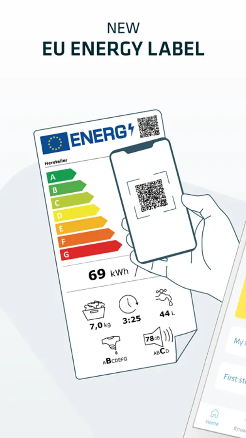 The new labels have a QR code than can be scanned using the app. It leads you to additional information about the labeled product, like its efficiency class, resource consumption and other details.