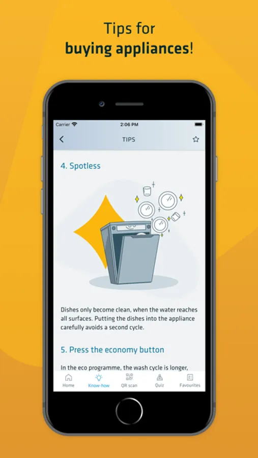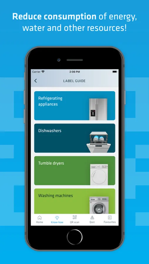 Do you plan to buy a new appliance? The app’s label guide gives you checklists to help you choose from the available products. Hints for everyday efficiency help you protect the environment and save money when using these products.