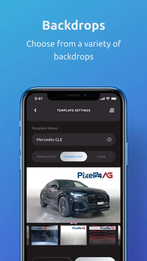 • Backdrop image that will be used as the background for the cut-out vehicle