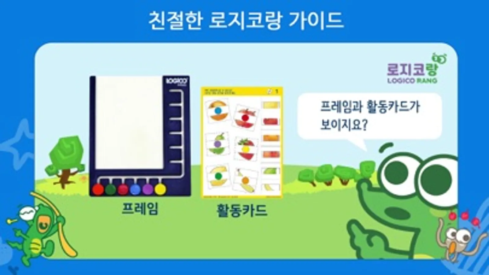 (1) 로지코랑 사용방법 : 프레임과 활동 카드의 사용방법과 정답 확인 방법 등이 자세히 설명됩니다.