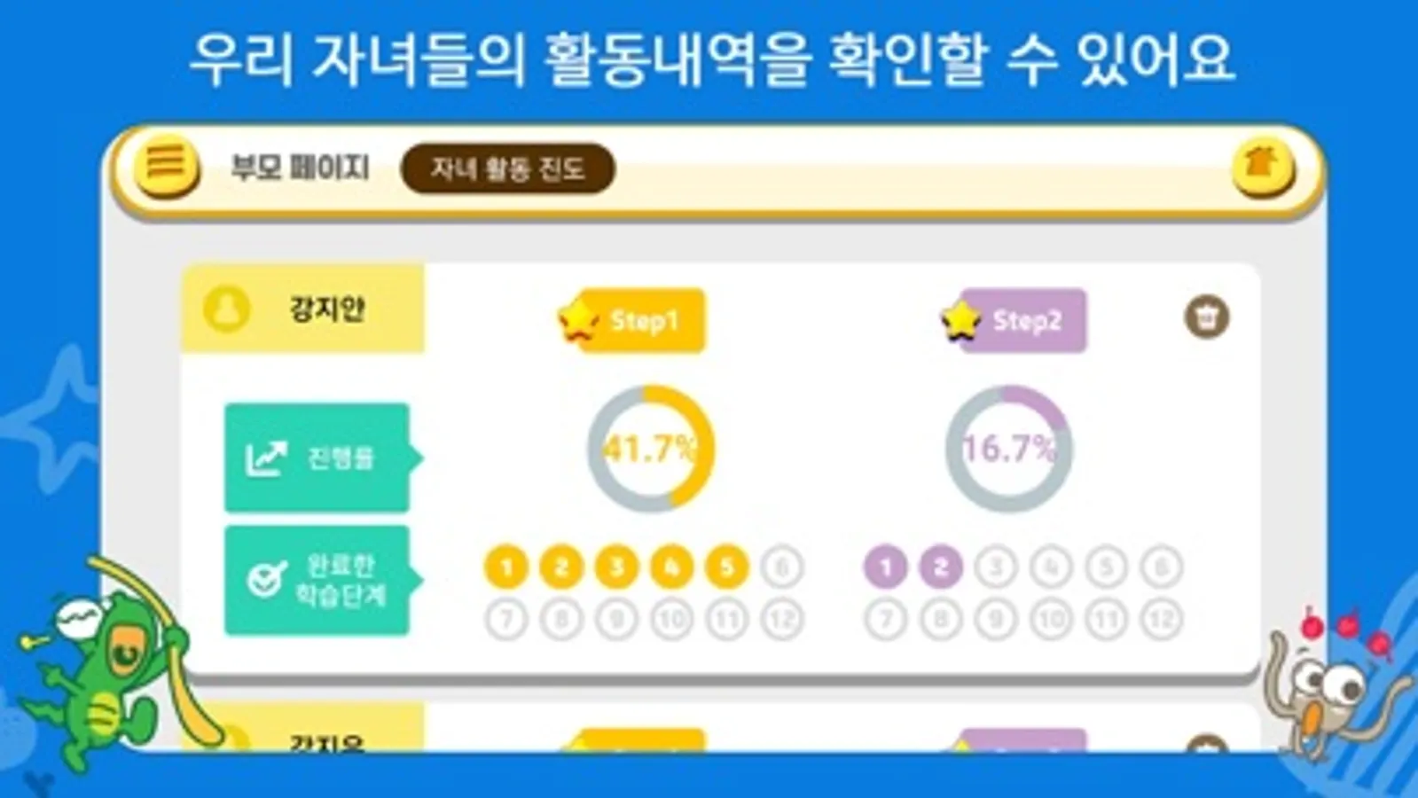 (5) 자녀 활동 진도 : 자녀의 학습 활동 진도 이력을 볼 수 있습니다.