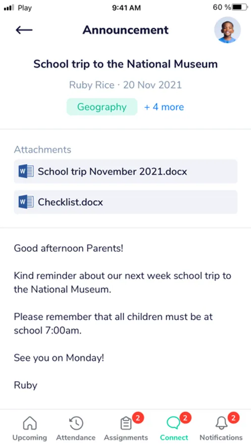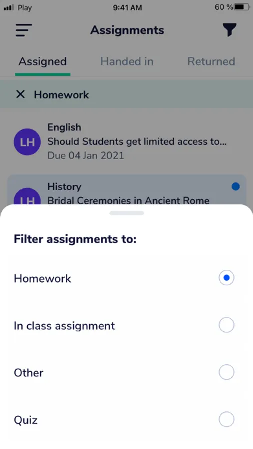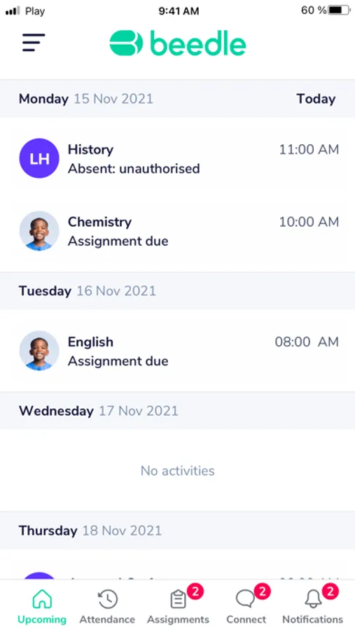 The Beedle Parent app allows guardians and parents a simple overview of their children's educational activities, as registered in the Beedle App for Microsoft Teams.