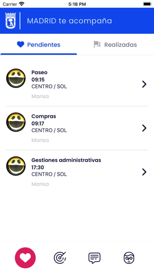 En cada demanda aceptada, aparecerá un botón de realizada, que el/la voluntario/a habrá de marcar una vez que se haya cumplido el acompañamiento.