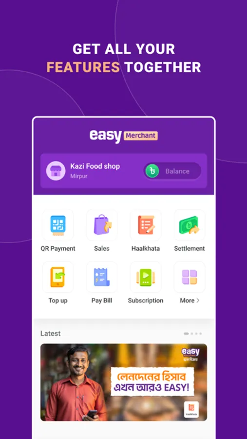 Easy Merchants app offers merchants to accept their daily payments in most easiest and secured way. Upon enrollment as a merchant, just show QR to customers, get instant payment notifications and settle cash to bank accounts.