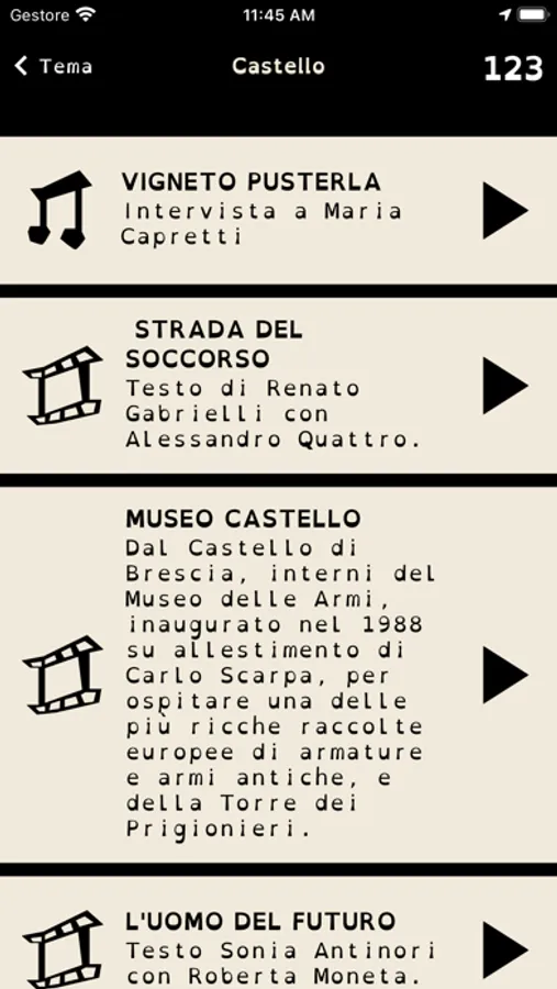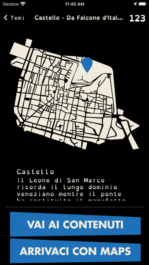 L’applicazione permette al visitatore della città di Brescia una esperienza organizzata in percorsi tematici.