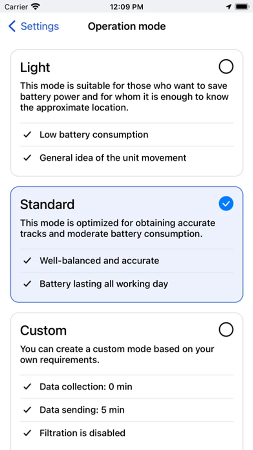 • Collection of data using smart mode for efficient battery consumption.