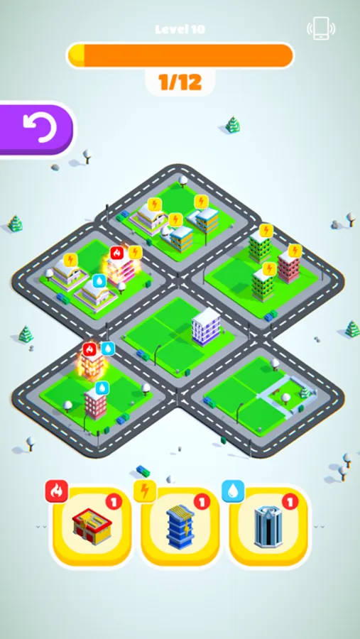 Place electricity, water, hospital, fire department and police departments correctly and solve the puzzle.
