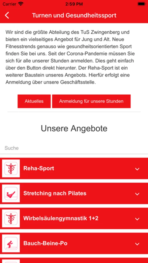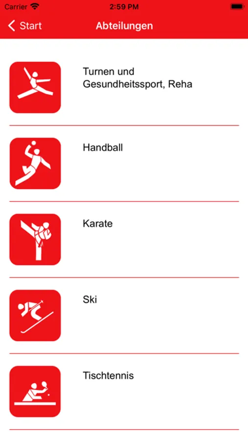 Der Verein besteht aus 5 Abteilungen: Turnen und Gesundheitssport, Handball, Karate, Tischtennis, Ski. Unser Verein in einer App. Hier findet ihr Zugang zu allen Informationen zu unserem Verein und seinen Abteilungen. Erfahrt als erste, was bei uns los ist, ob es neue Kurse oder Angebote gibt. Haben sich Trainingszeiten oder -orte geändert. Wann und wo ist das nächste Spiel? Gibt es ein Trainingslager?