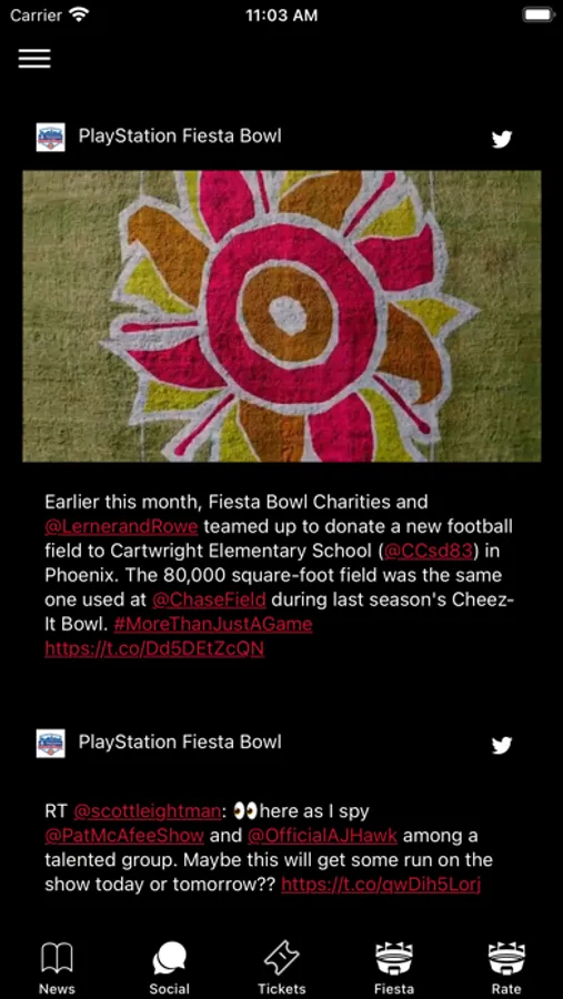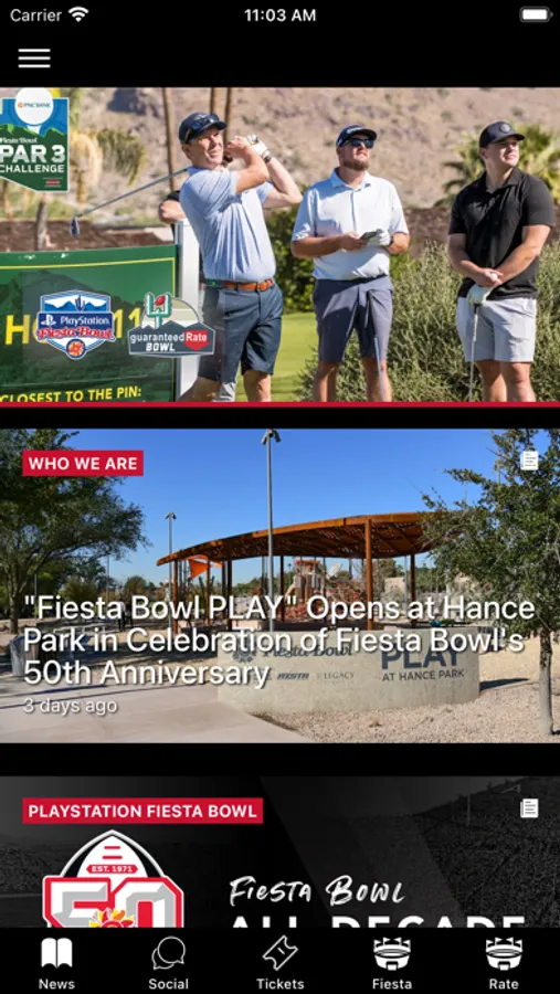 The official Playstation Fiesta Bowl app is a must-have for fans headed to the game or following from afar. With interactive social media, ticketing, game day policies, and more the Fiesta Bowl app covers it all!
