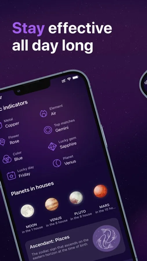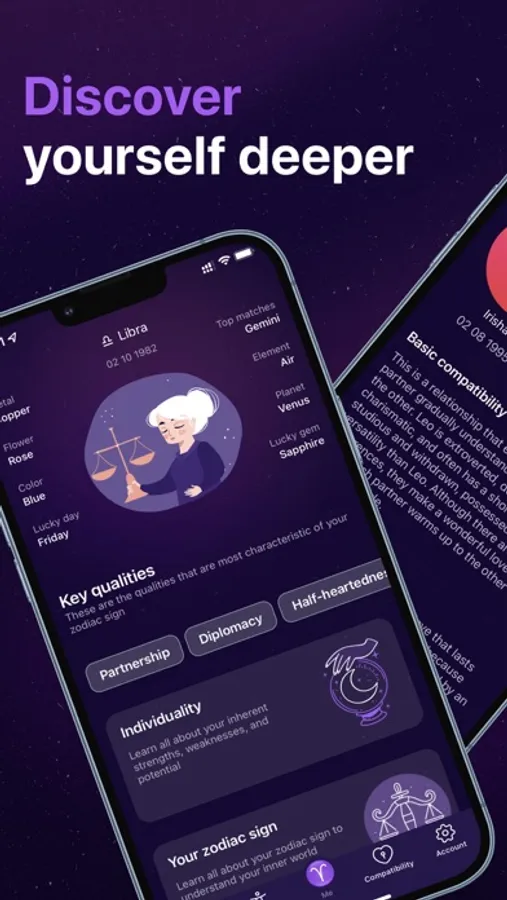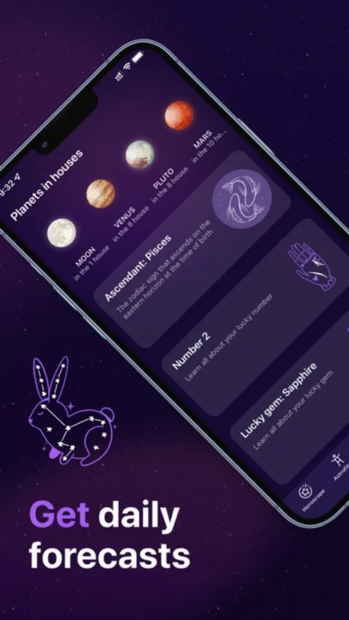 With Astro, you can get to know your true self: find out what the future holds for you, learn about your perfect match in love life and friendship, as well as to get your body in great shape with workouts! Do you know your lucky gem, your perfect color, metal, flower, element, and planet? And what about your daily biorhythms? Are you aware of your lucky days? If your answer is 'no', worry not, the app has all the answers!