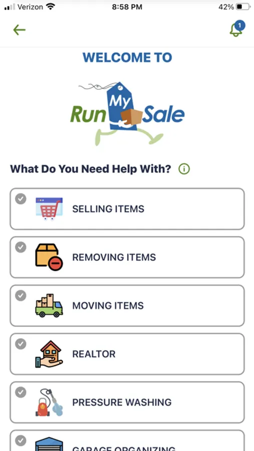 Step 1) “Customer” downloads app & enters information for what they need help with. This is quick & easy. The main service RMS affiliates help with is selling items via offline or online garage sales. However, some affiliates offer other services such as moving, item removal, pressure washing, & more. The app can even connect you with a realtor.