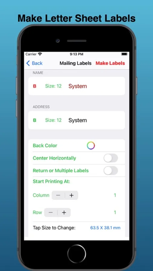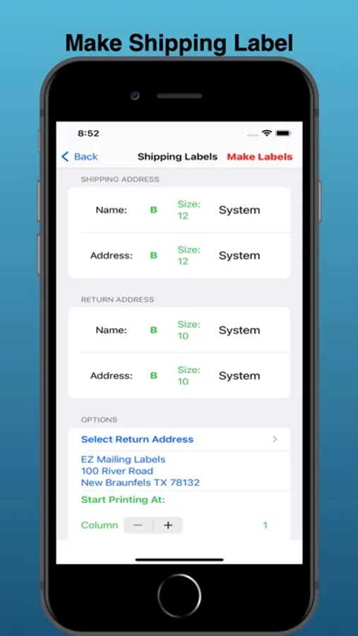 - You can choose the font size and if the address does not fit the label then the app will attempt to make it fit by incrementally reducing the font size.
