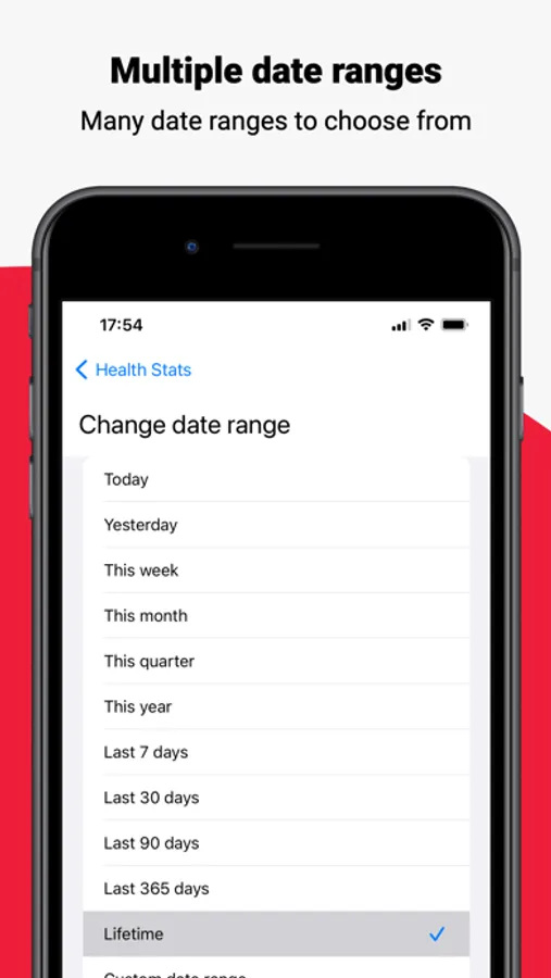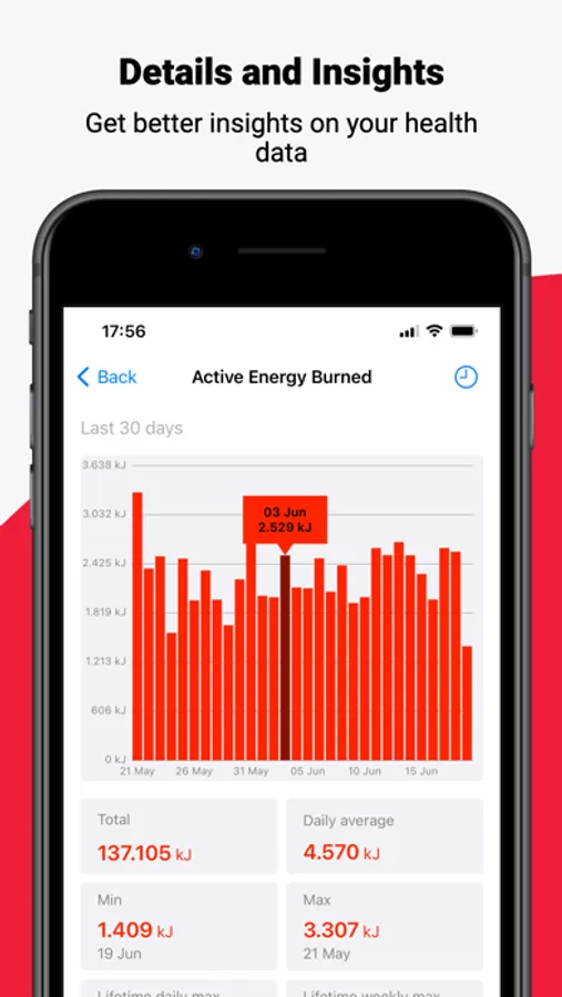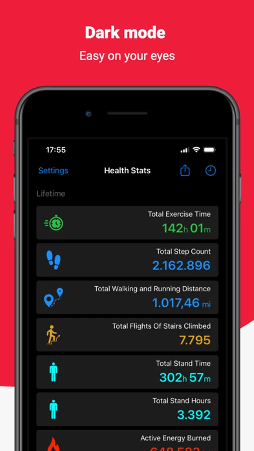 Harness the power of data-driven decisions with Health Stats. Dive into detailed graphs, averages, minimums, maximums, and personal bests, all accessible through your Apple Health dashboard. Monitor your progress on a daily, weekly, monthly, and yearly basis.