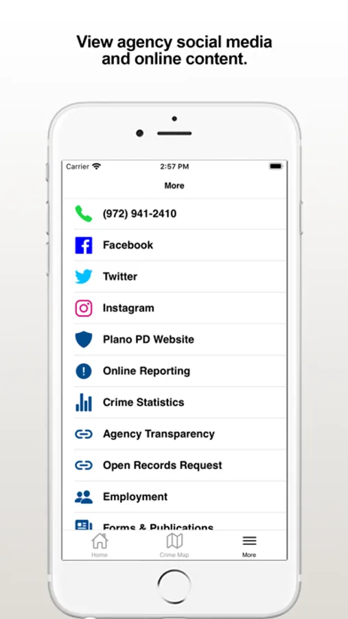 The Plano PD app provides the ability to submit anonymous tips to the Plano, TX Police Department. The app also displays online crime map, and other organization web and social media content.
