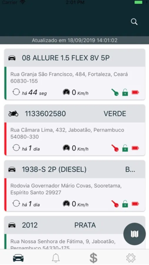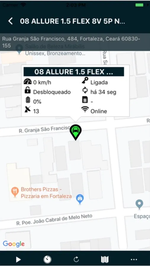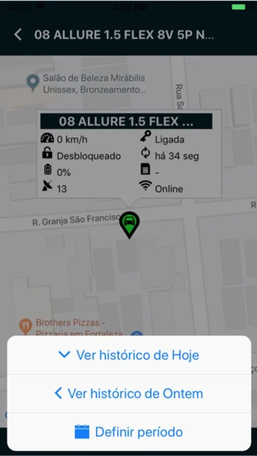 Saber informações do(s) veículo(s) como velocidade, ignição ligada ou desligada, data e hora da última conexão com o rastreador.