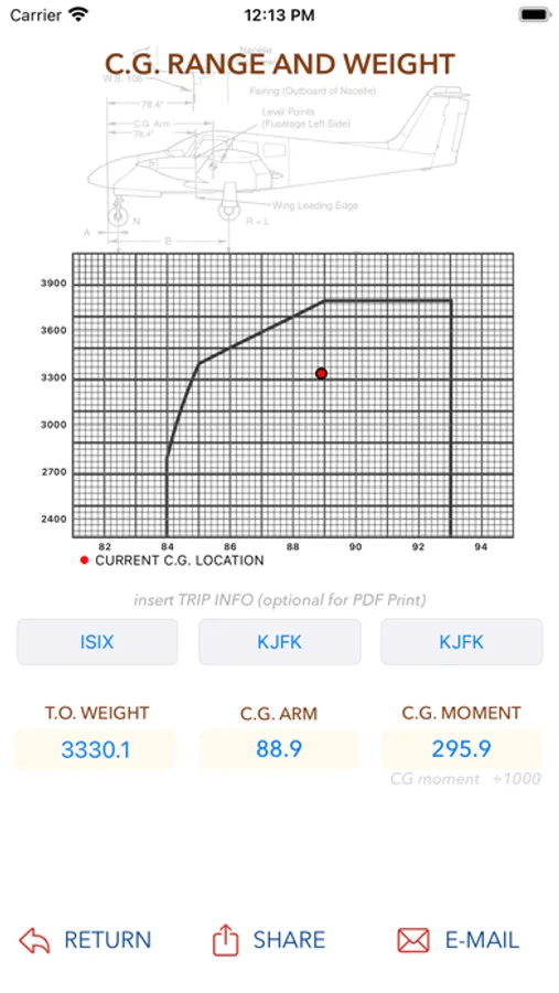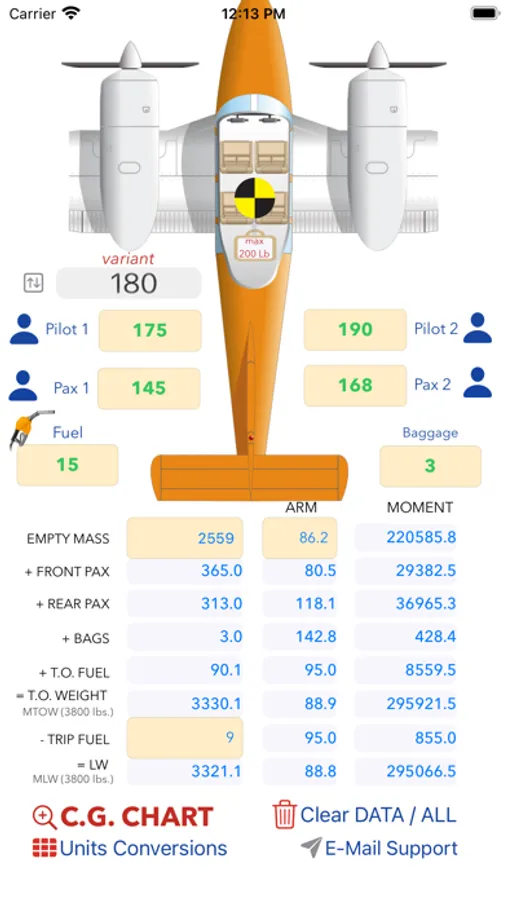 Piper PA44 SEMINOLE Mass & Balance calculator with easy and interactive weights adding, real time Chart plotting. While you introduce weights a CG symbol will move promptly FWD and AFT to help you spot a too forward or too aft CG position.