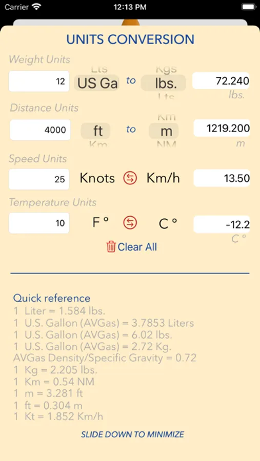Convert all necessary weight and fuel Units on a dedicated page.