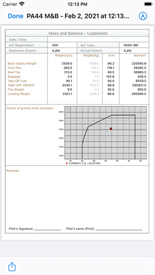 Create your PDF file with your loadsheet in a professional looking sheet, save it, print it, share it or e-mail it! Includes regulatory data such as A/C registration, departure aerodrome, arrival aerodrome, time and date.
