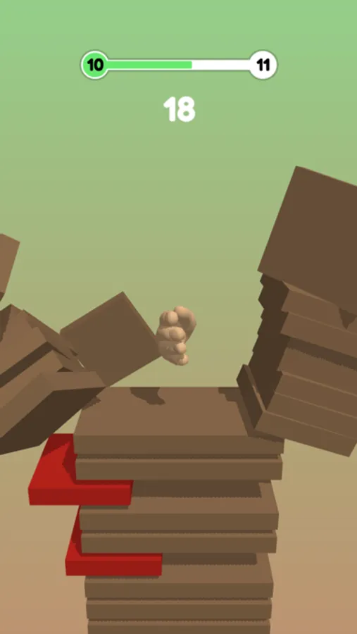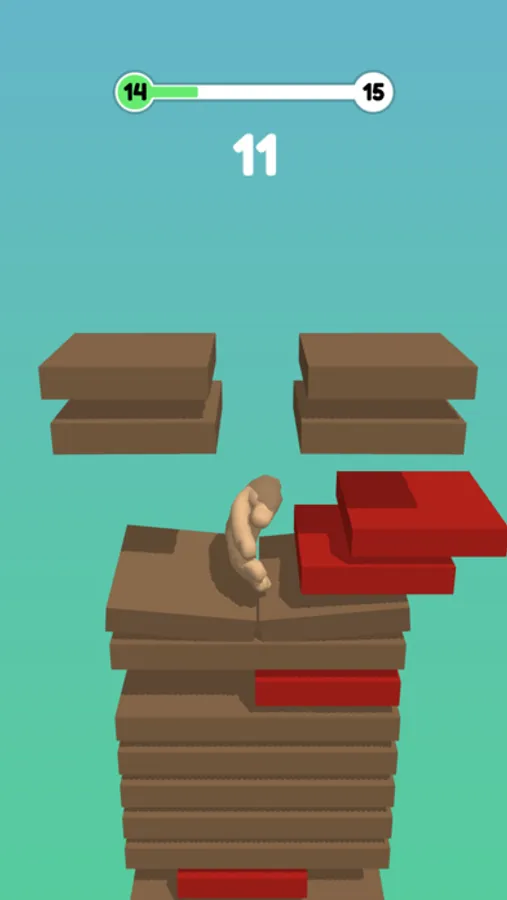 Avoid the red bricks and make your way to the bottom of the stack.