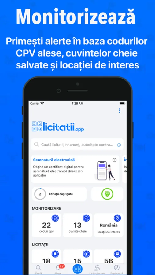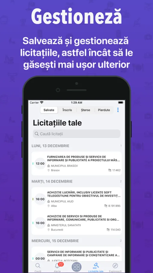 Find out first which are the newest tenders published in SEAP (e-licitatie.ro), with the help of the only application for monitoring public procurment.